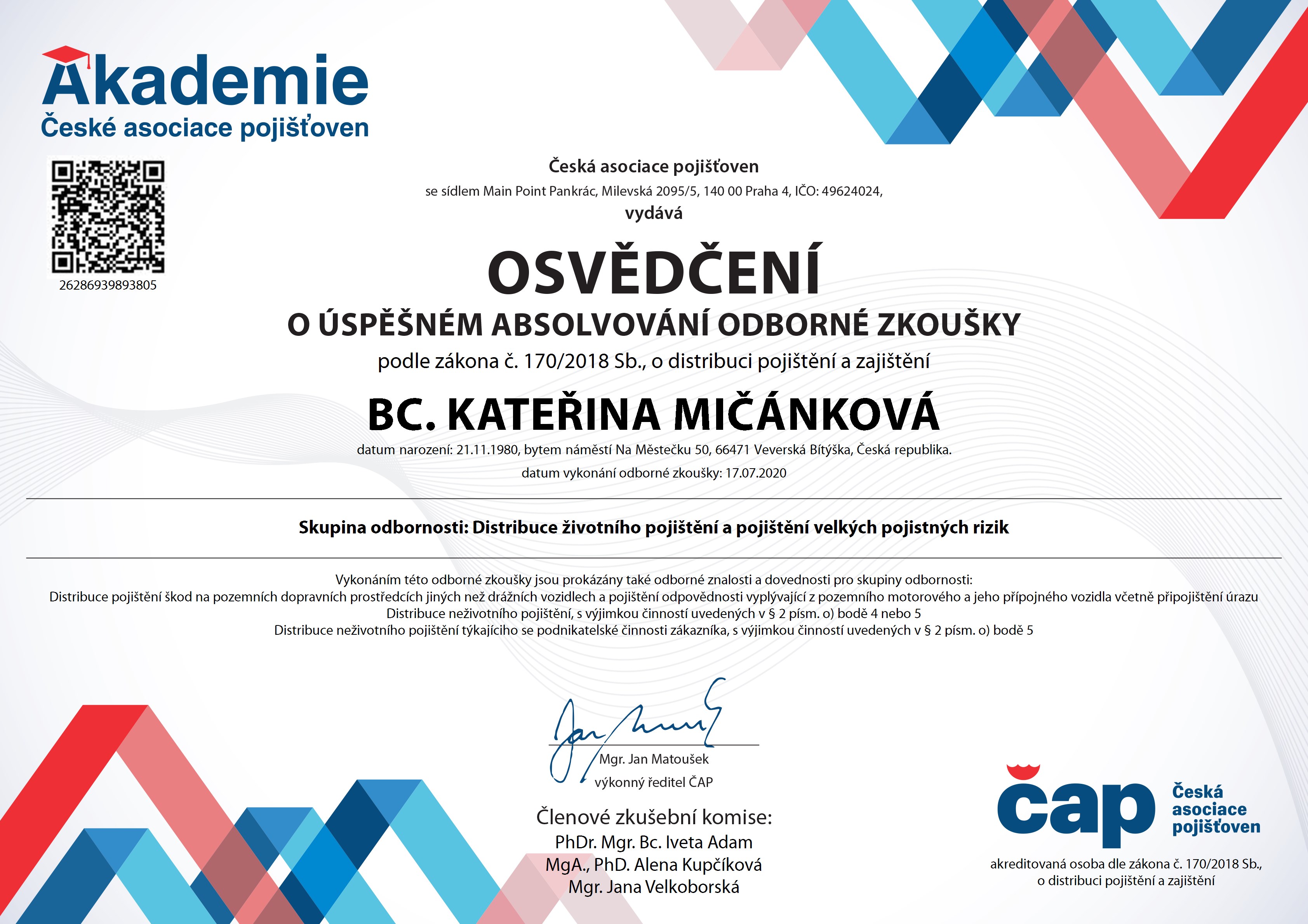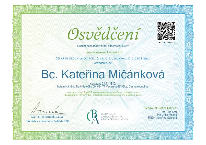 Dlouholetá praxe v obchodní činnosti a marketingu mě naučila komunikaci s lidmi. Tyto zkušenosti jsem v roce 2019 propojila se světem financí a pojištění. Téměř 4 roky jsem pracovala pro pojišťovnu Allianz, kde jsem se starala o více než 400 klientů. Finanční poradenství je obor dynamický, a proto vyžaduje nejen pravidelné vzdělávání, ale také pořádnou dávku sebereflexe.