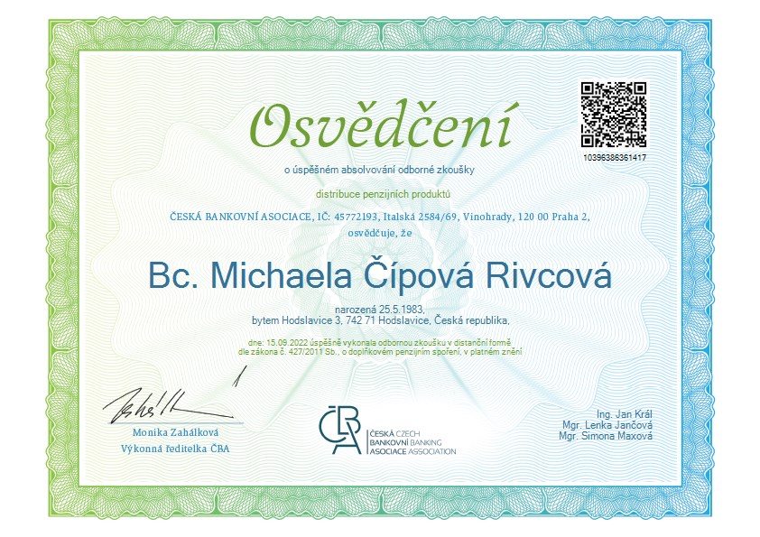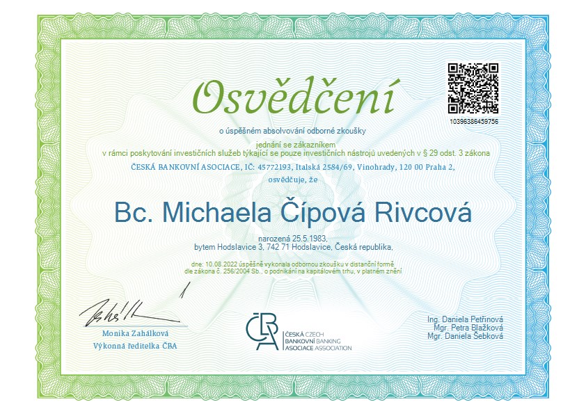 Kdybych napsala, že finance byly můj životní cíl, lhala bych. Vždy jsem chtěla být veterinářka. Ale když sem se měla rozhodnout, na jakou SŠ jít, šla jsem nakonec na elektro průmyslovku, můj největší životní omyl. Poté jsem šla na Pedagogickou fakultu, obor učitelství pro střední školy strojírenství. Shodou životních okolností jsem se ale dostala přes svého švagra k finančnímu poradenství. V tomto odvětví jsem se našla a největší odměnou jsou pro mě spokojení klienti, kteří mě sami doporučují dále.