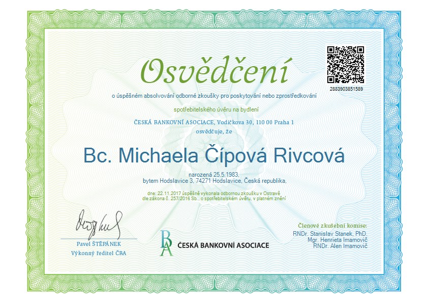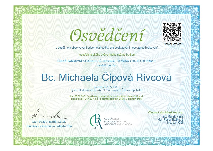 Mým cílem je spokojený klient. Jsem šťastná, když se mi například podaří vyřešit komplikovaný úvěrový případ, na které jsem vždy měla štěstí. Často se na mě obrátili klienti, kterým jiní poradci neuměli pomoci a spolu jsme případ vyřešili.