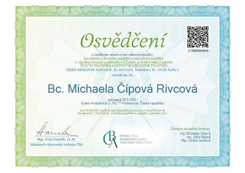 Pocházím z Nového Jičína, kde jsem žila od narození do svých 28 let. Poté jsem se odstěhovala do Hodslavic, kde jsme s manželem koupili dům. Mám kancelář v Novém Jičíně, ale nemám problém za klienty přijet kamkoli, již jsem například byla za klientem v Hradci Králové, nebo využít moderní technologie bez nutnosti osobního setkání.