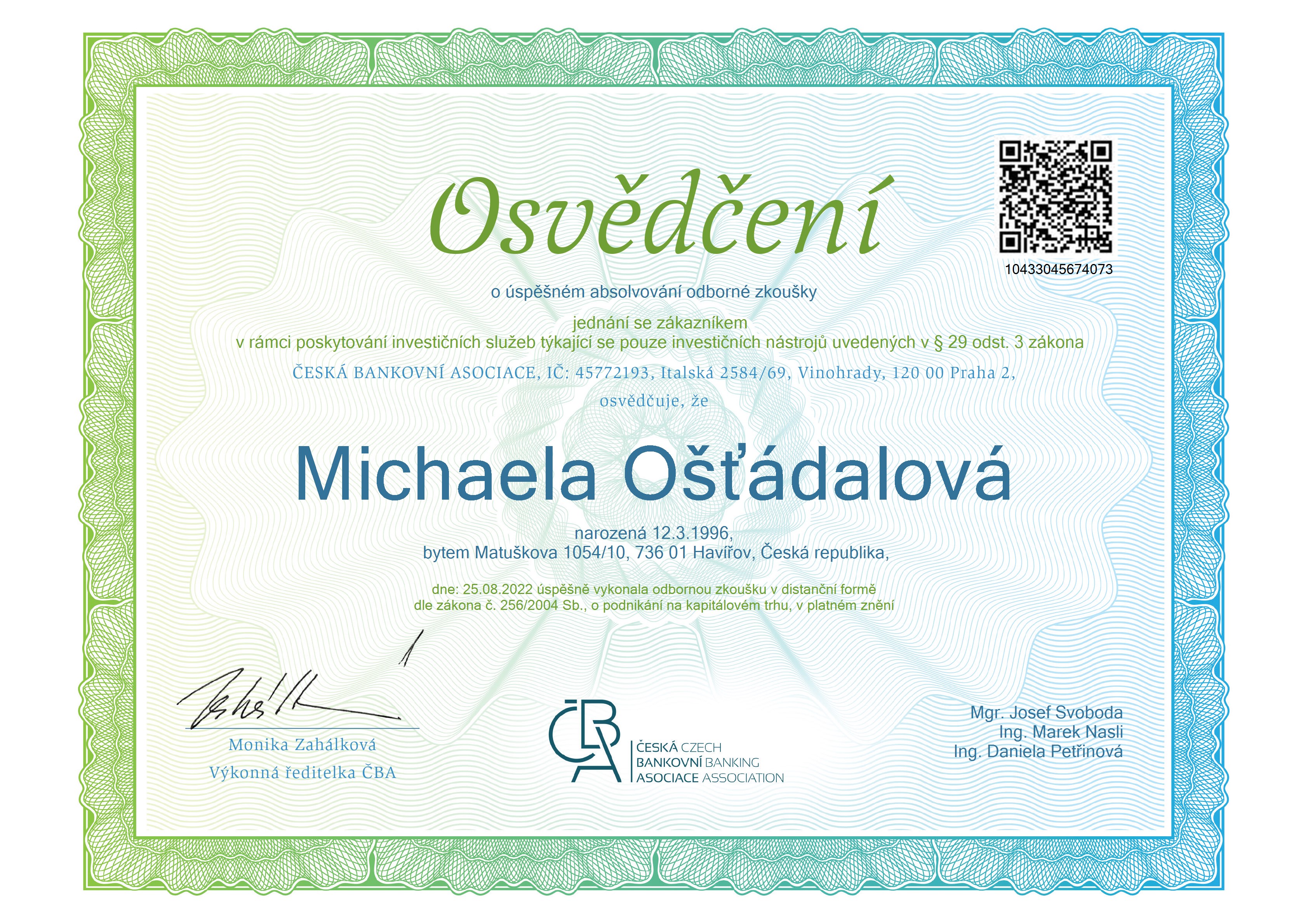 Na finančním trhu jsem se začala pohybovat v roce 2018 ve stavební spořitelně, kde jsem získala cenné zkušenosti. Postupem let jsem zjistila, že klienti vyhledávají komplexnost nabízených produktů. Proto jsem se rozhodla, že se v roce 2023 vydám cestou komplexního finančního poradenství.
