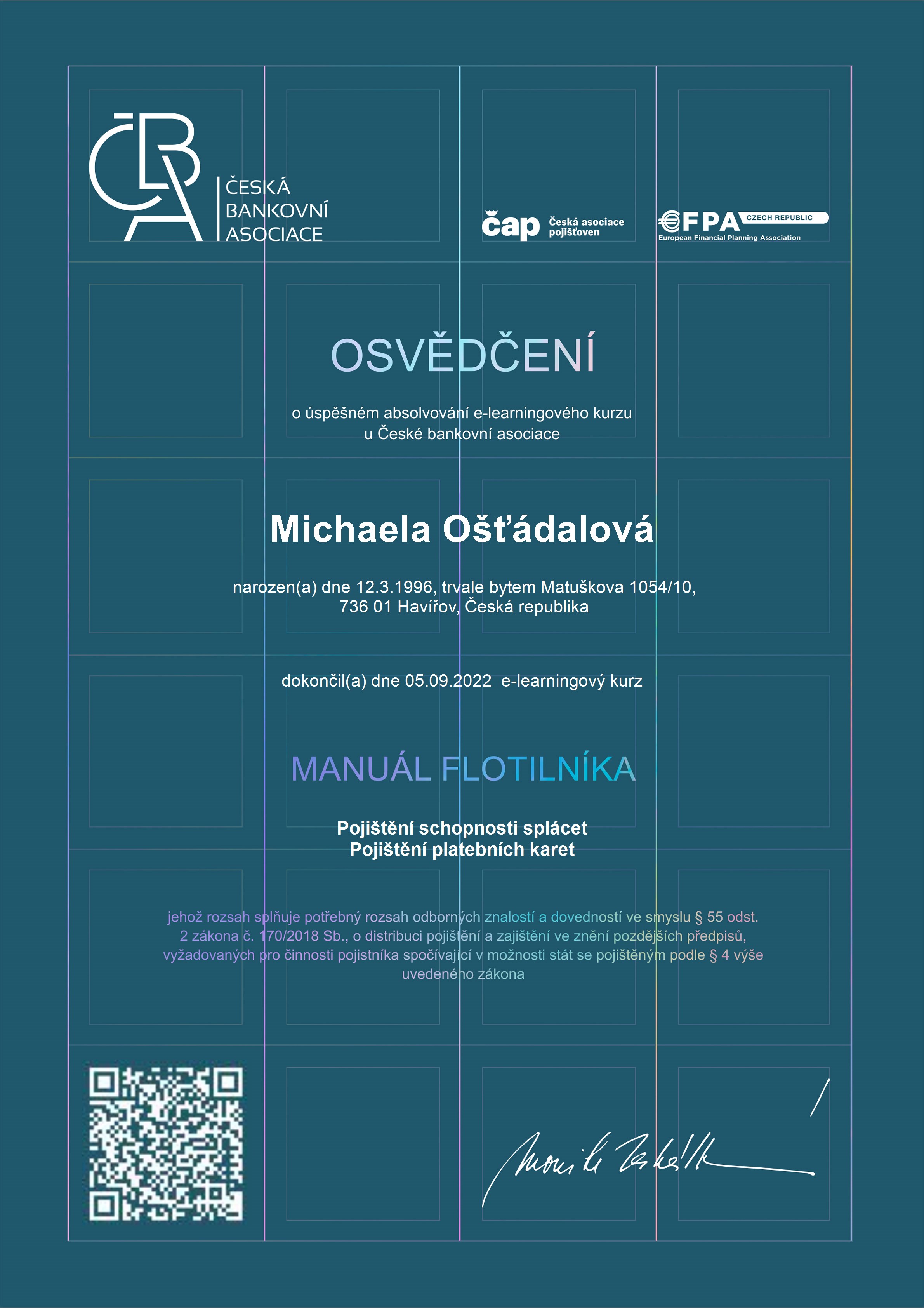 Mým pracovním cílem je poskytnou kvalitní finanční poradenství, mít dlouhodobě spokojené klienty, kteří májí správně zajištěná rizika a splněné finanční cíle.